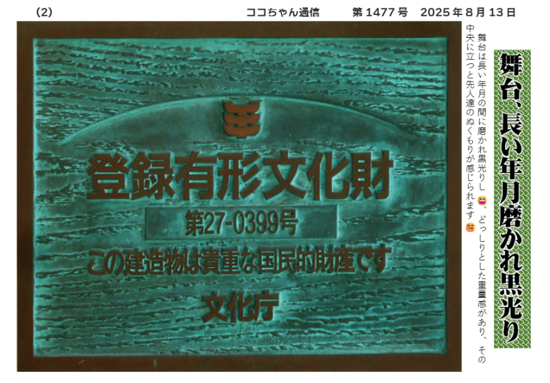 舞台は長い年月の間に磨かれ黒光りし 😆、どっしりとした重量感があり、その中央に立つと先人達のぬくもりが感じられます 😋