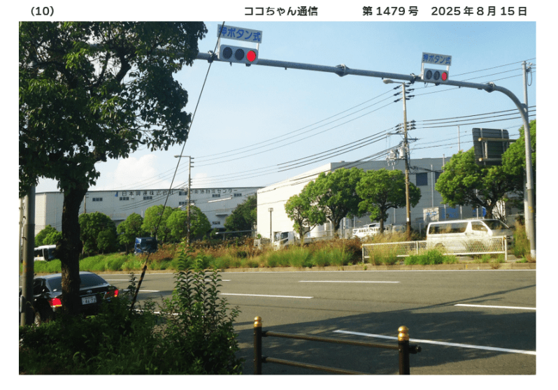 4車線の道路を挟んだ、手押しボタン式の信号機です😲