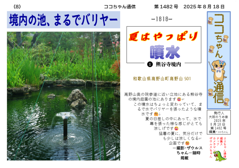 高野山奥の院参道に近い立地にある熊谷寺の境内庭園の池にあります😃