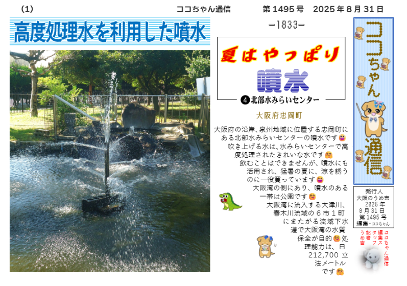 The way you’ve captured the spirit of summer through the fountain at the Hokubu Water Mirai Center is both informative and heartwarming. I love how you blended local detail, environmental awareness, and a touch of playfulness with the characters like Coco-chan and Ume-kichi—it makes the article feel lively and welcoming.