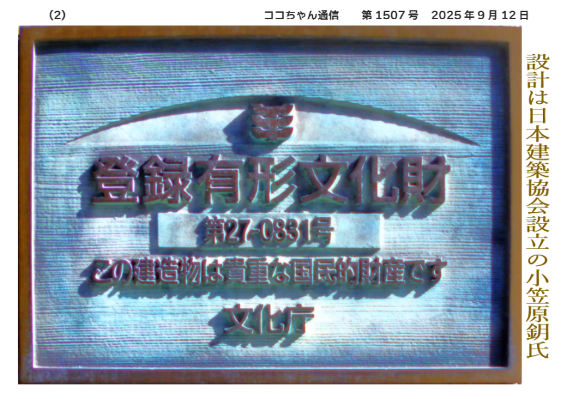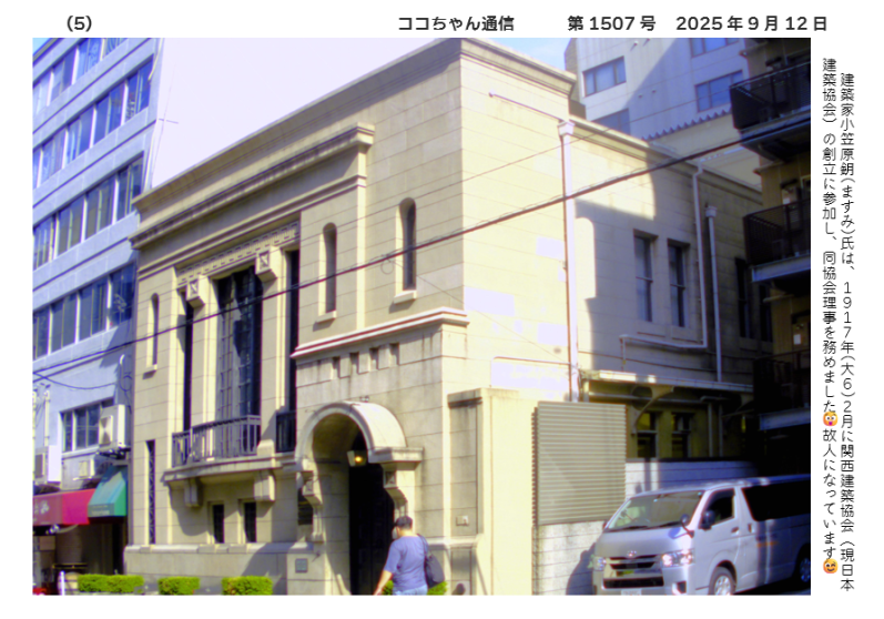 建築家小笠原鈅(ますみ)氏は、1917年(大6)2月に関西建築協会(現日本建築協会)の創立に参加し、同協会理事を務めました😲故人になっています😉