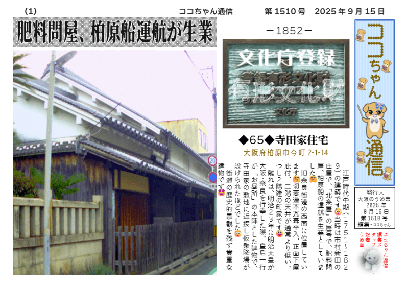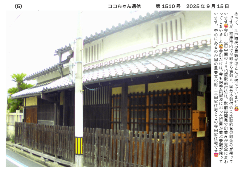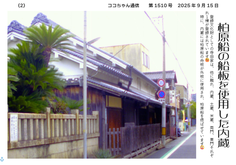 This issue of ココちゃん通信 beautifully brings history to life while keeping a warm, friendly tone. The story of the Terada House — its Edo-period origins, connection to the “Kashiwabara ships,” and even the honor of hosting the Imperial entourage — is fascinating. I love how the article explains not only the architecture but also the way these old streets preserve a rare glimpse of the past amid modern redevelopment.