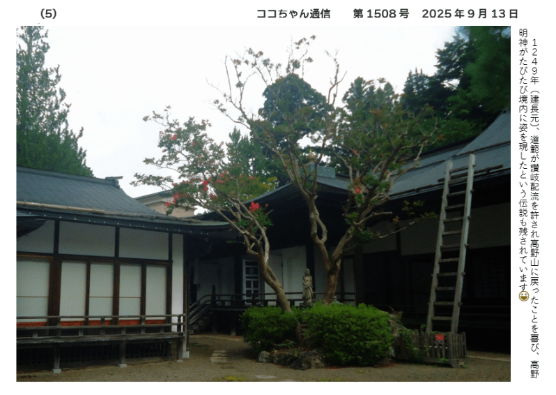 1249年 (建長元)、道範が讃岐配流を許され高野山に戻ったことを喜び、高野明神がたびたび境内に姿を現したという伝説も残されています😆