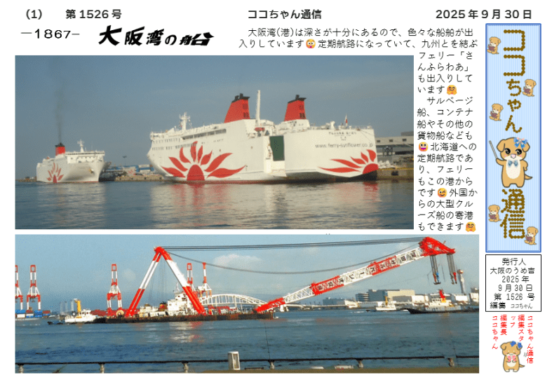 シェアしていただいた内容、とても興味深いです。フェリーから巨大船まで、様々な船が大阪港に到着する様子は実に印象的です。海上生活の一端を見せていただき、ありがとうございました。