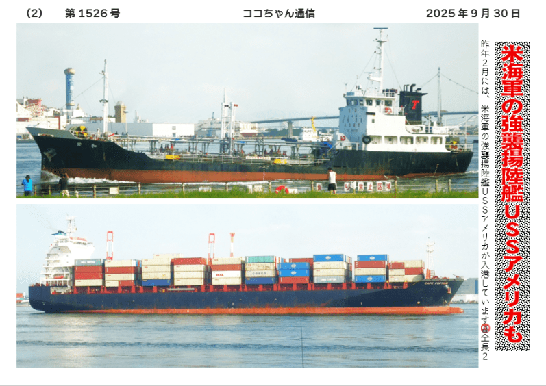 けれど、アメリカであれ、日本であれ、軍艦は来てほしくないです😡