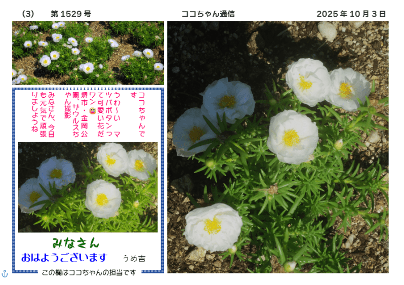 大阪のうめ吉様 おはようございます。白いマツバボタン、素敵ですね。スベリヒユ科の植物だったのですね。暑い夏も平気で咲いているのも頷けます。ずっと昔からお馴染みの花だったので、そこまでは知りませんでした。😅 マツバボタンと言えば思い出すのがマツバギク。改めて調べてみたのですが、こちらはスベリヒユ科ではないようです。なかなか奥深いものですね。🤔