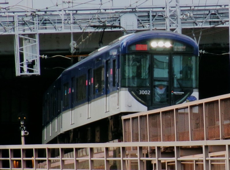 京阪電車、地下から出てくるとすぐに高架橋。その逆は高架橋から下りてくると地下ですからね。このわずかな狭い範囲しか撮影チャンスがありません😖