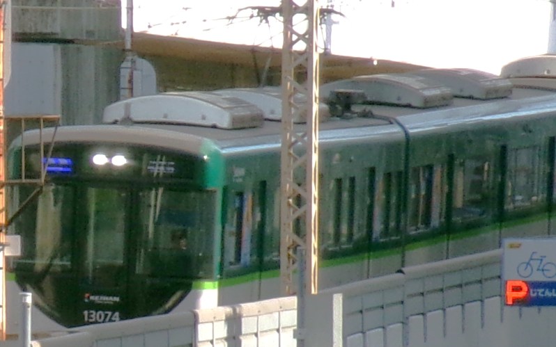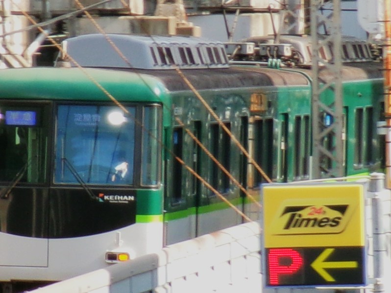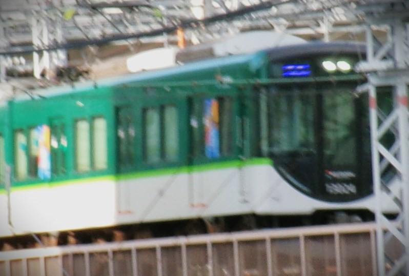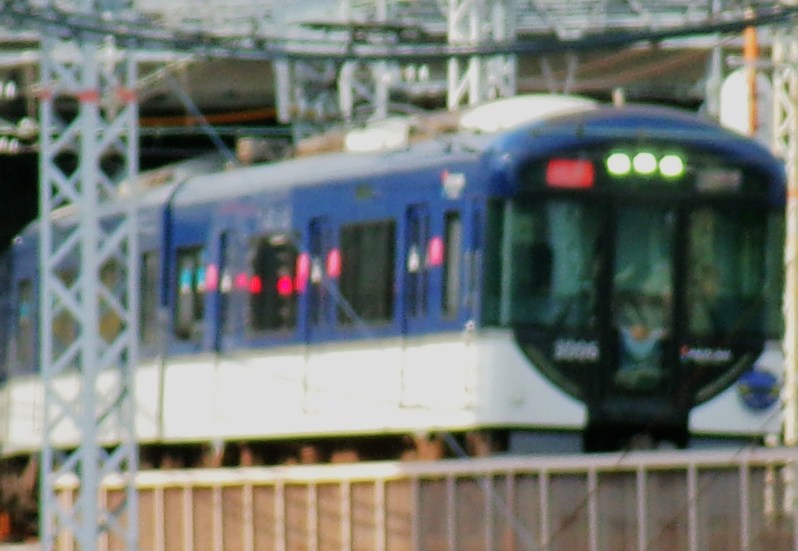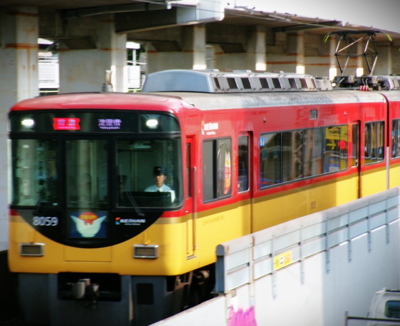 京阪電気鉄道の電車、昨日と同じ場所での撮影です。同系が多い中、新たに加わったのが、車体の上半分が赤、その下がオレンジの車両8000系です😄この車両には8059と表示されています😁