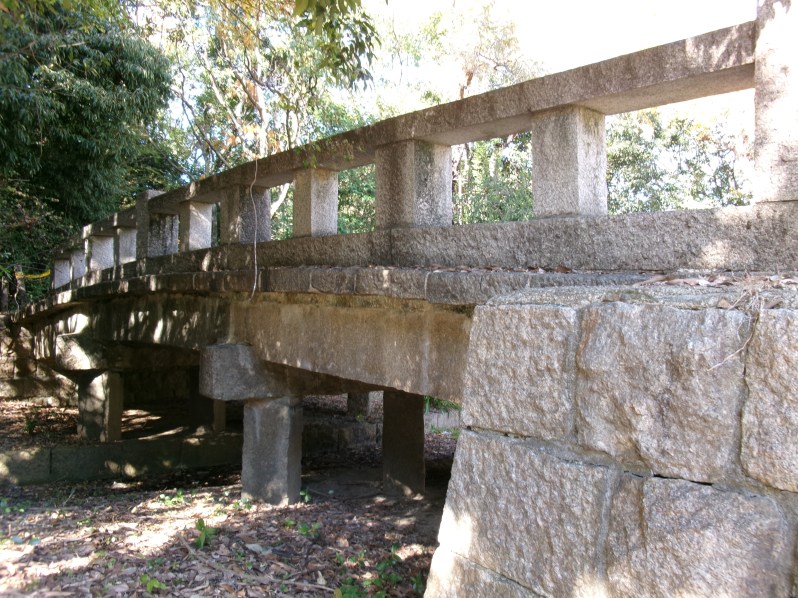 江戸時代 1865に架設され、1988年に移設されました☺️構造は、石造桁橋、橋長11メートル、幅員4.5メートルです🤗花崗岩を用いた、石造3連桁橋で、橋板を支える縦桁を、4本の石材からなる橋脚の頂部の横桁で受けています。幕末に主要街道に築かれた道路橋の一つです😲
