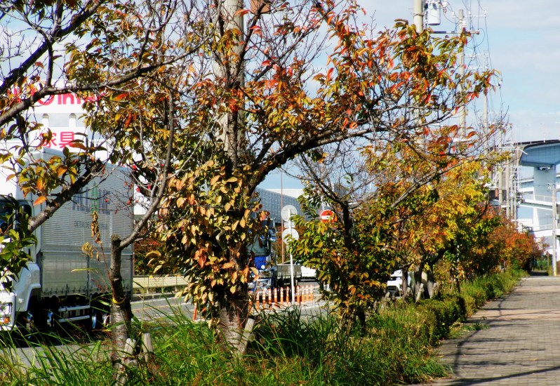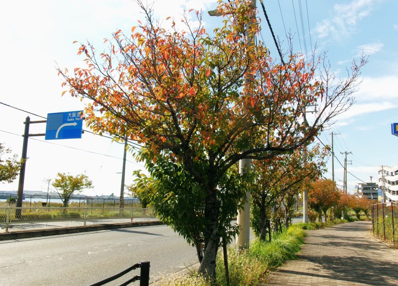 大阪市大正区から港区を結ぶなみはや大橋(尻無川に架かる全長1740メートル)、その橋から大正区側の通りに、車道と歩道を仕切る街路樹として植栽されているのがオオシマザクラです😲