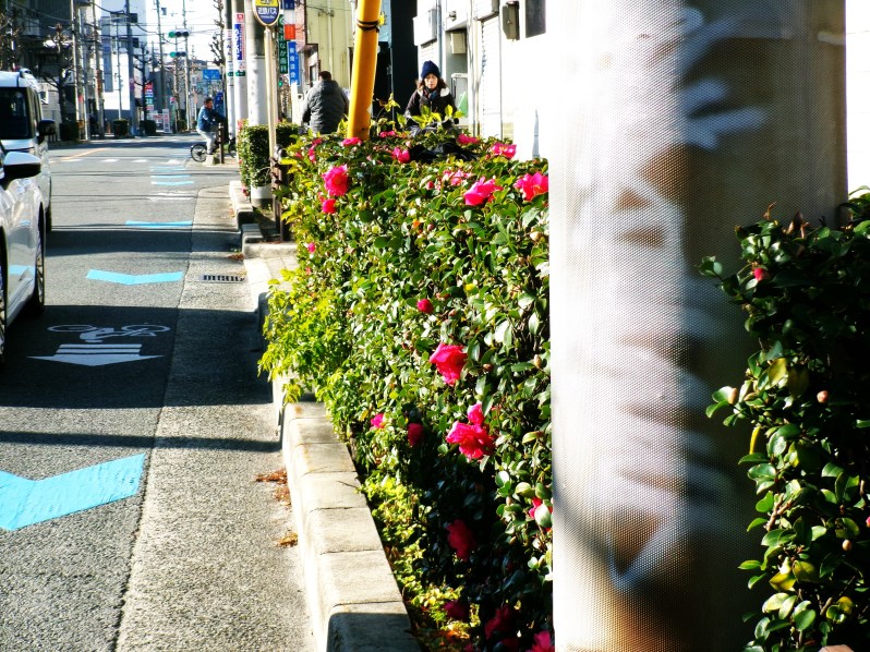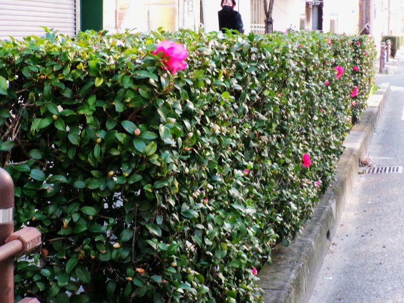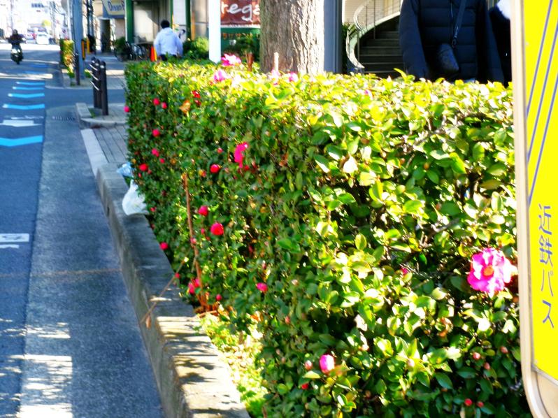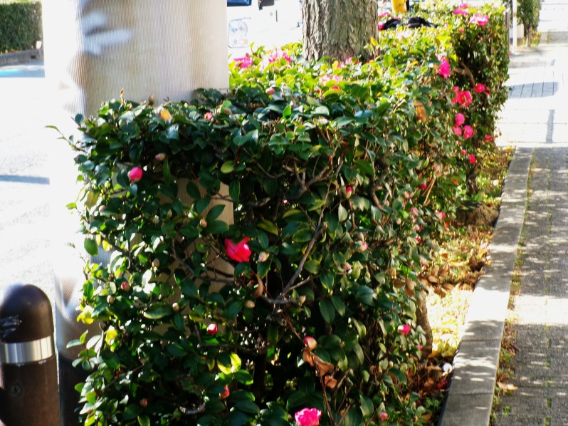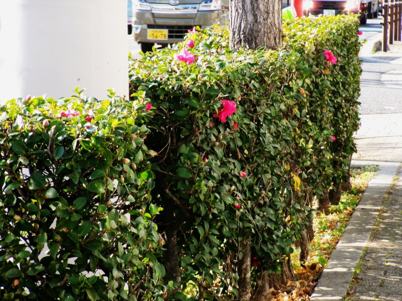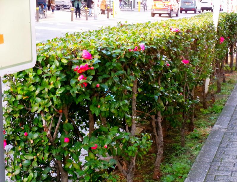 市道400号線に植栽のサザンカ