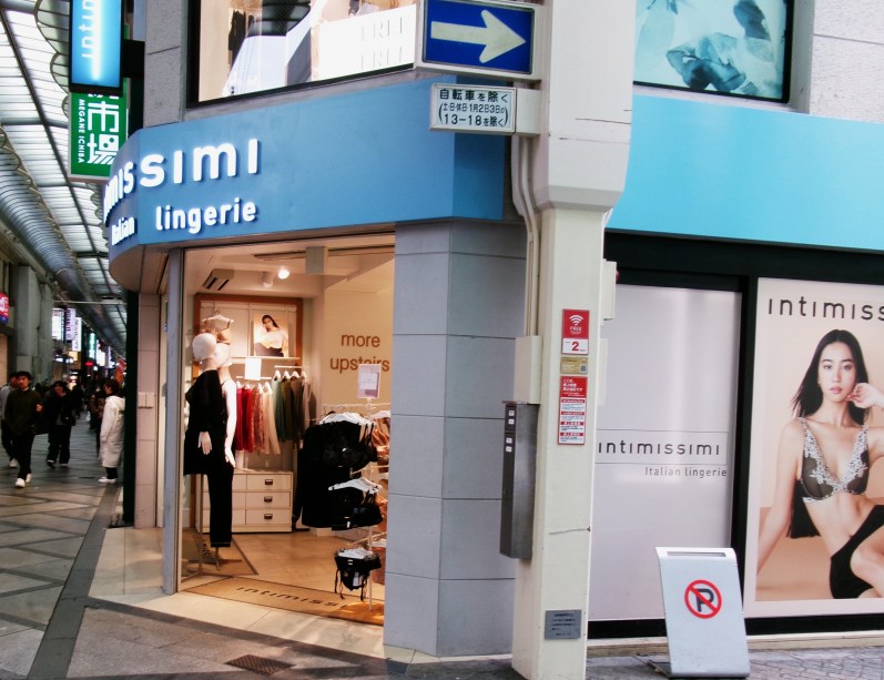 心斎橋筋にあるINTIMISSSI MI イタリアの有名ブランドを扱うランジェリーショップ(専門店)です😆