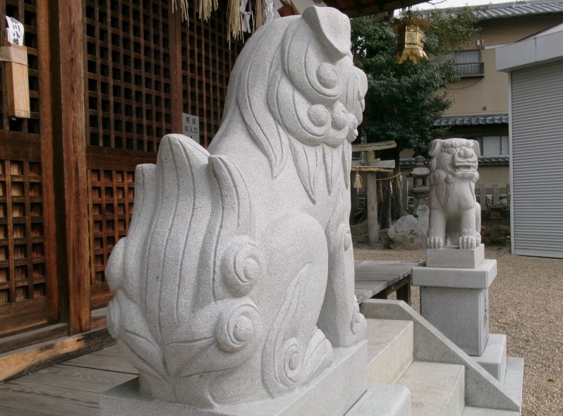 境内のくすのき、むくのき、あきにれは、八尾市の保全樹木に指定されています☺️現在のコマさんは、2006年(平18)5月に先代からバトンを引き継ぎ、服部川八幡宮と参拝者を見守っています🙇♂️