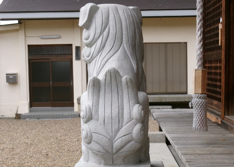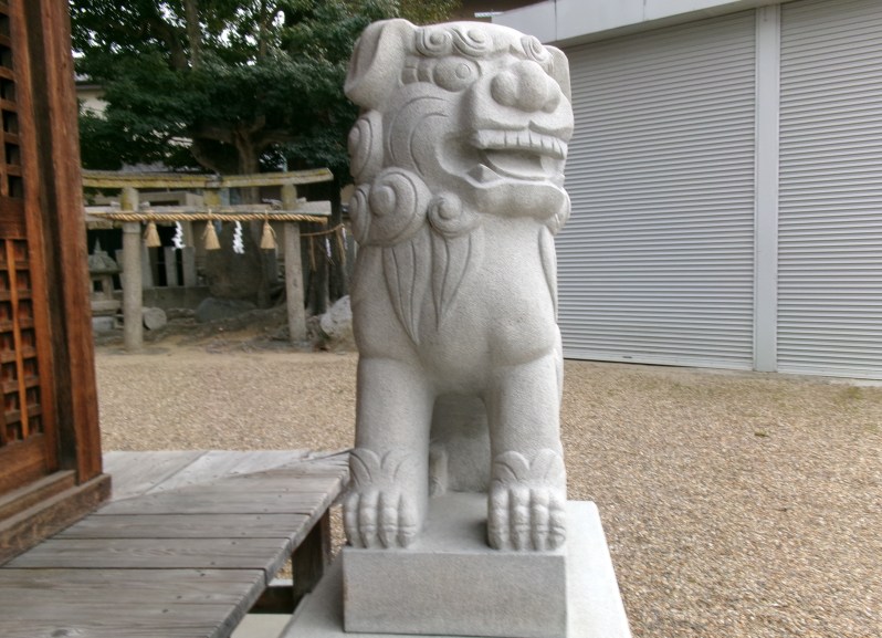 拝殿前の狛犬には、「巳亥天保十年十一月吉日」の銘があり、この年に奉納されています。明治に入って、高安郡神立村の玉祖神社に合祀されました。その後1892年(明25)、旧社地に社殿を造り、正遷宮を行い祭りました🤗