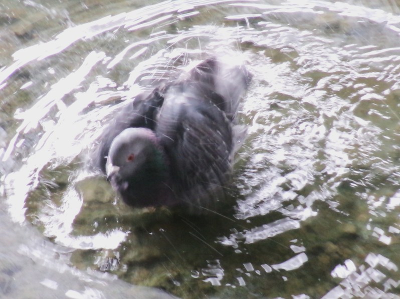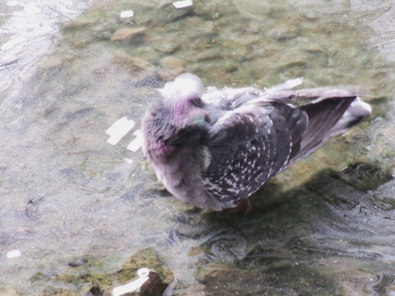 野鳥といっても、あまりにも身近であることから、ちょっと変わった趣向で捉えたのがこれらの写真です😁大阪市内を流れる大川、都島区の川岸でのドバトです。ドバトは水浴びをしてきれいに身をつくろっていました😆