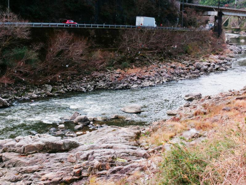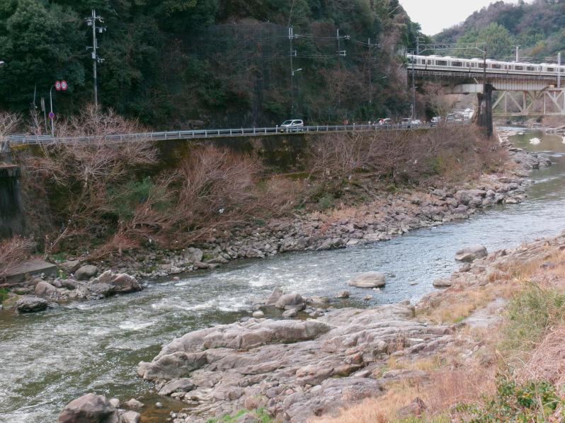 地すべりは、亀の瀬北のドロコロ火山から噴出した溶岩が、二層になって南下しているのが原因です😧2度の噴火で、風化した粘土層がみられており、地下水を含んだ粘土層がすべり面となっていることです。左岸には大和川断層があって、溶岩層の裾を大和川が浸食していています。こうしたことが原因で地すべりが繰り返されてきたものです😢