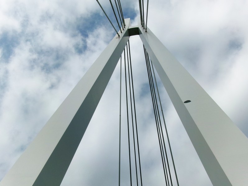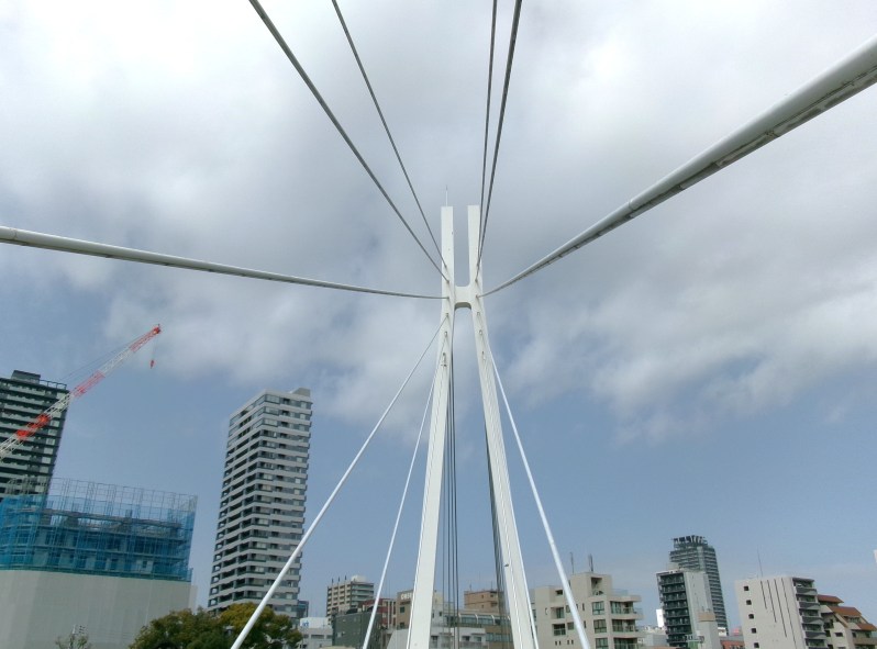 形式は斜張橋です。この形式は高い塔から多くのケーブルを出し、桁を吊るタイプのものです。景観を重要視し、技術的にも優れているとして、土木学会の賞を受けました😆
