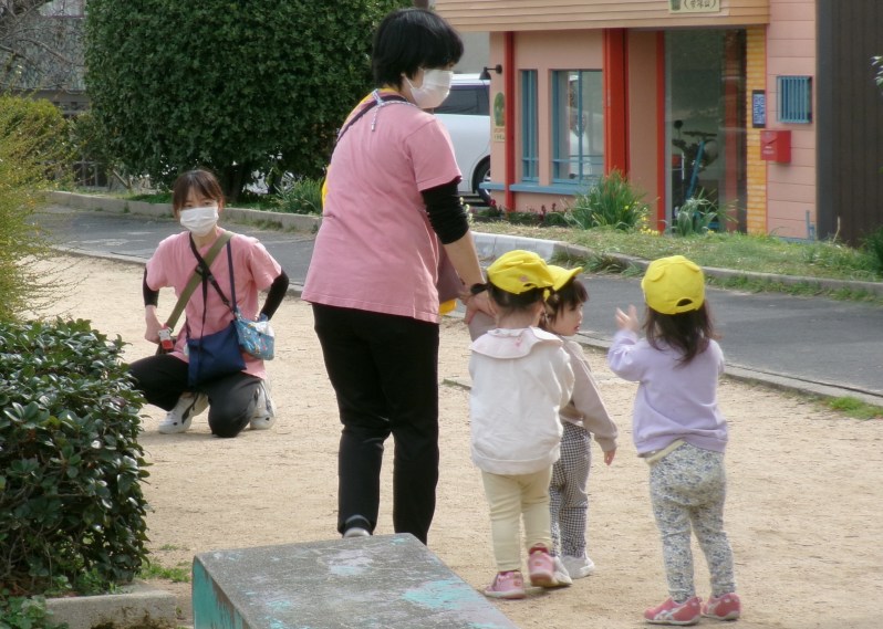 公園を先生に連れられてのお散歩の子どもたち、ほんと可愛いです。先生と手をつないだり、お友達と手をつないでいる光景最高です😄