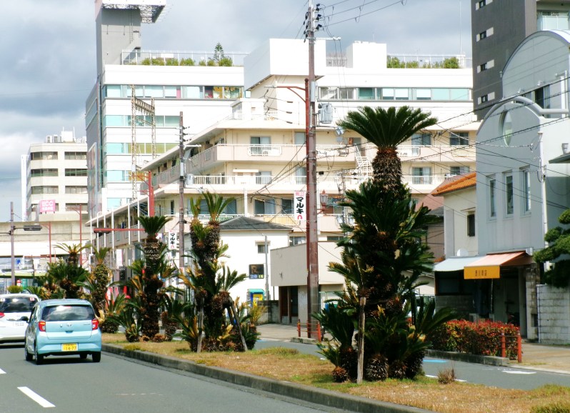 大阪府八尾市を走る府道178号線のうち大型商業施設、近鉄駅がある少し手前まで、東本町 1-6~4-3までの区間、中央分離帯に植栽されているソテツです😄ソテツの街路樹は珍しく、南国を思わせる光景です😆