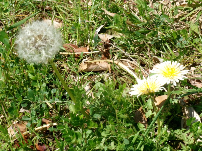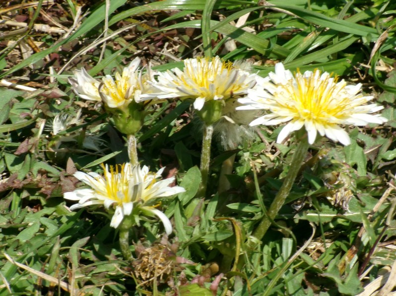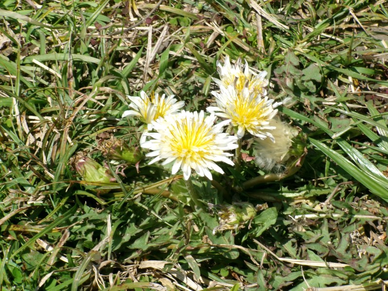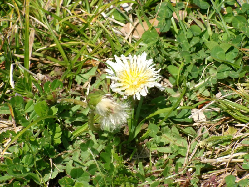 白と一重咲きのタンポポ