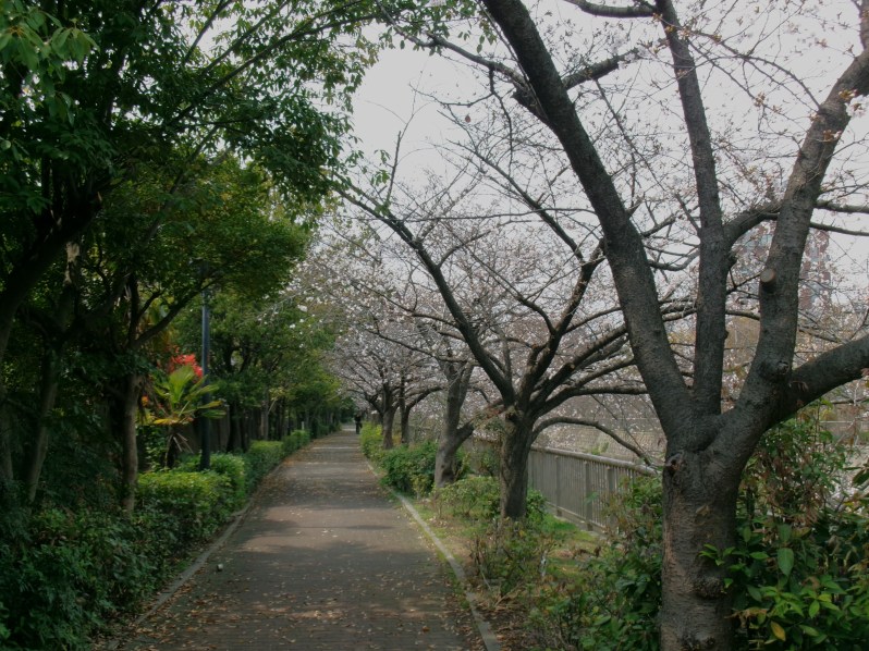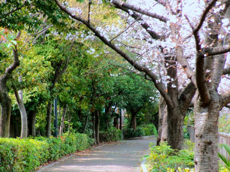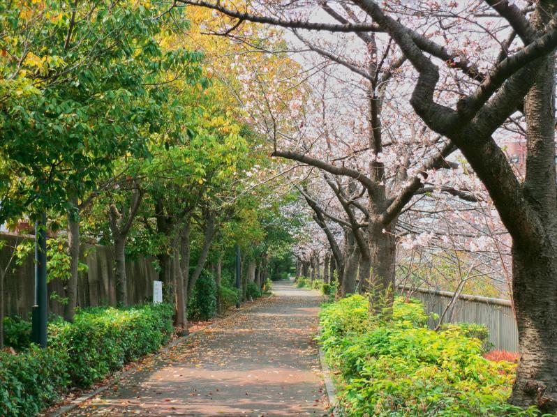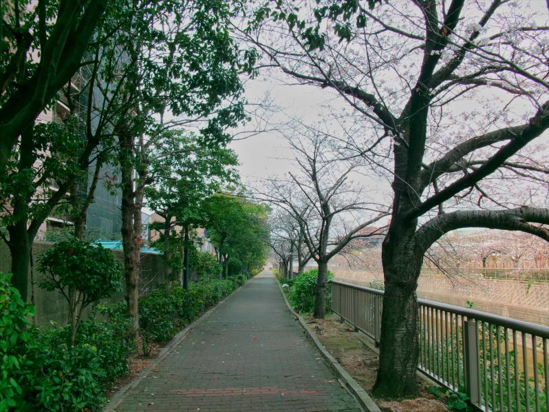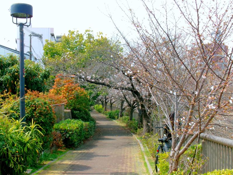 住吉川に沿ったサクラ並木の道