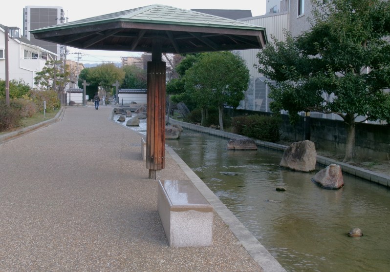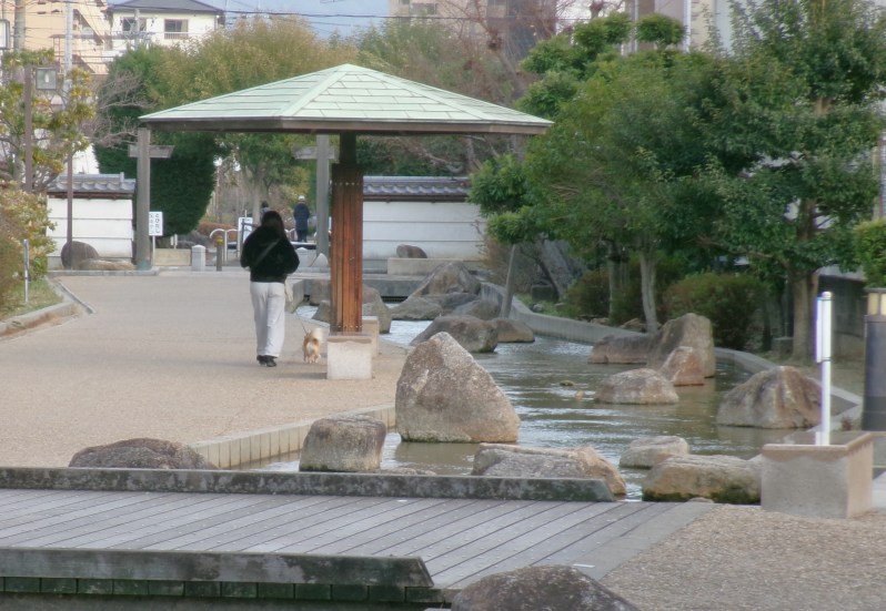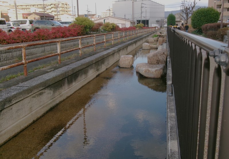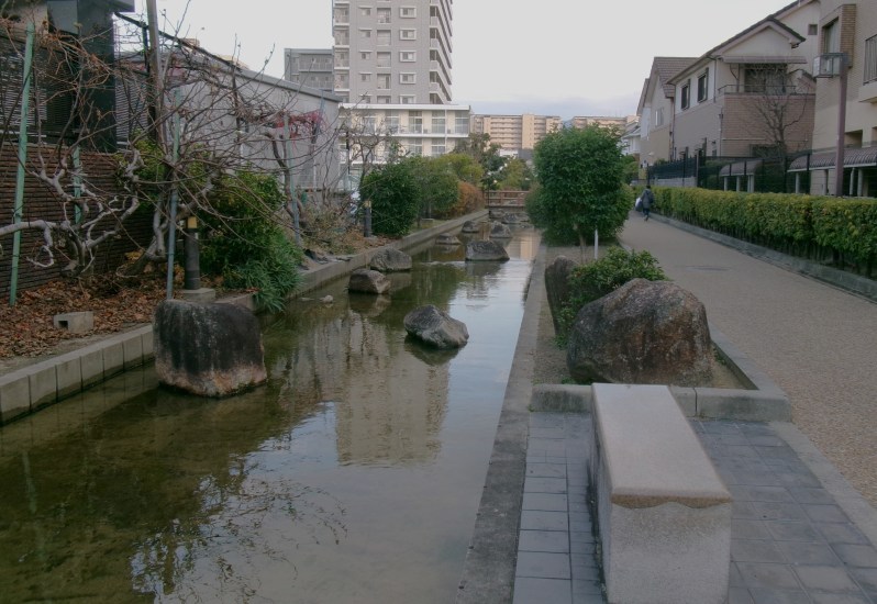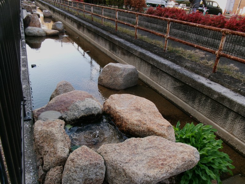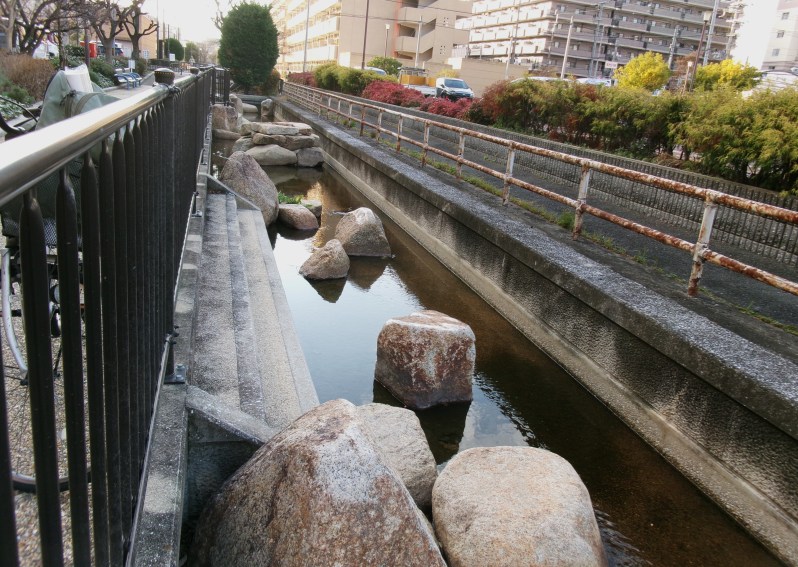 東大阪市中鴻池町の四季彩々通りを流れるせせらぎです🥰子どもが入っても足首までしかない水位です😄都市の中のせせらぎで、それに沿って遊歩道があり、あづま屋で休憩もでき、市民の憩いの場、散策の場になっています🤗